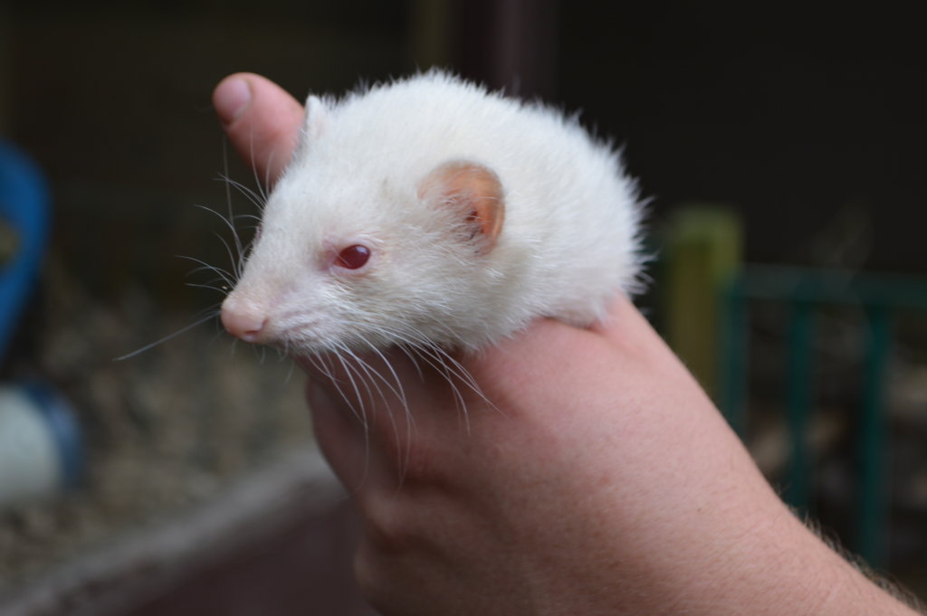 The fur is usually white or yellowish, but polecat - coloured ferrets can also be found. They are widely found across Europe and are part of the Mustelidae family, which also includes otters and skunks. They have a very flexible backbone and are renowned for their agility- they can literally be bent in half, making them very useful to farmers, who send them down rabbit burrows.